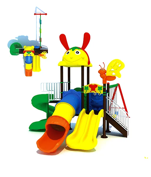 A vibrant, insect-themed playground set designed for children aged 2-15 years, featuring a slide, tunnel, swings, and fun crawling spaces. Ideal for parks, schools, or home backyards.